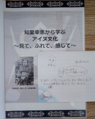 5月6日13時に室蘭市チリベツよりいらしたお二人に『知里幸惠ノート』、著者サインの『カムイチカッポ』などをプレゼントしました。
