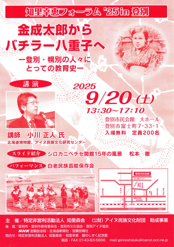 9月14日(土曜日)、毎年恒例の知里幸恵フォーラムが開催されます!